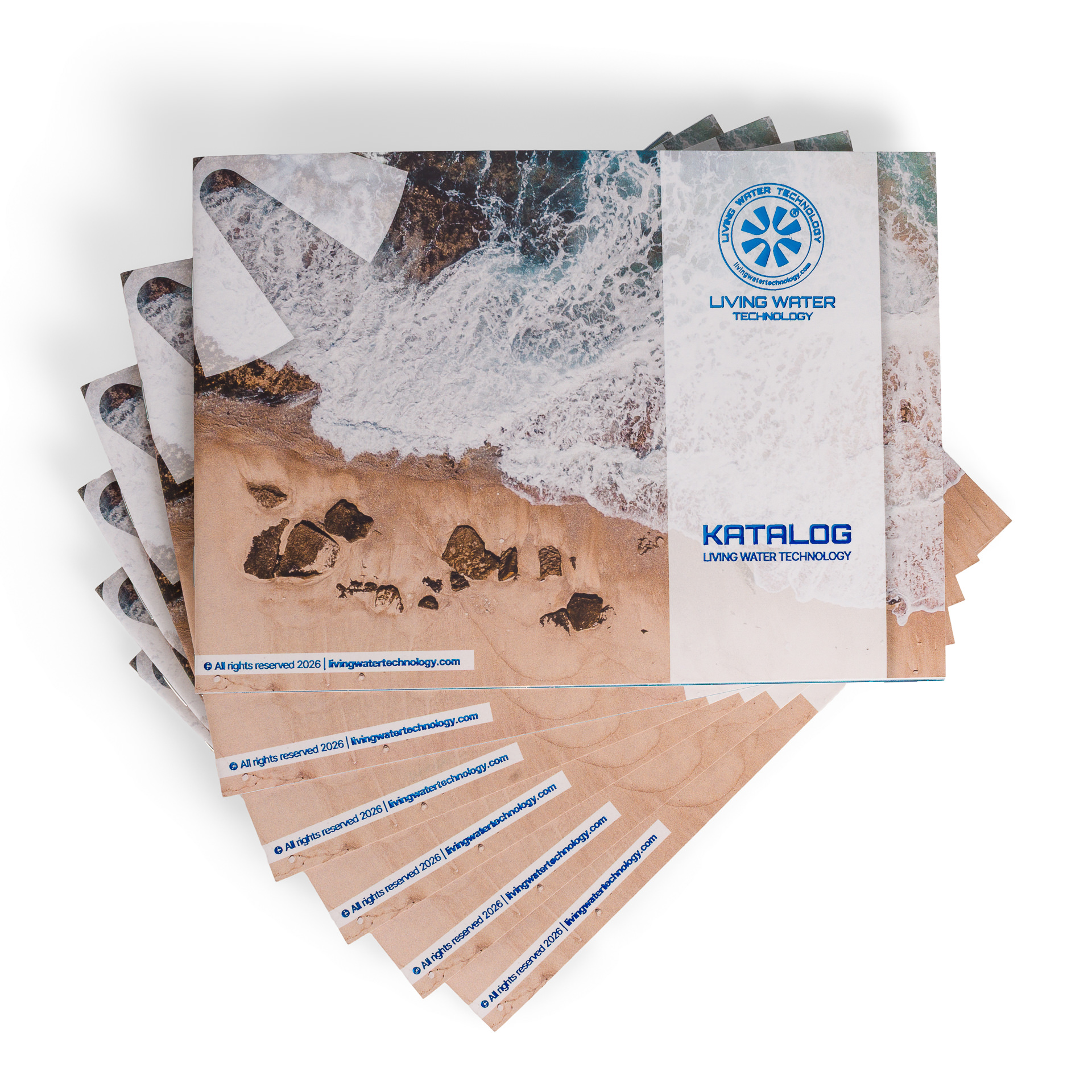 Elegancki, drukowany katalog produktowy do pracy z klientem i prezentacji oferty. W środku znajdziesz pełny przegląd rozwiązań Living Water Technology w czytelnej, „premium” formie — idealny na spotkania, eventy i do wysyłek.